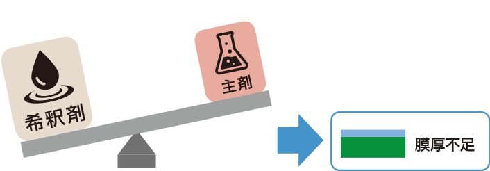 この現象を起こしやすくする原因の一つとして、“主剤と希釈剤の配合バランス”があります。