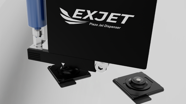 EXJETは、高密度・高精度実装が求められるカメラモジュール工程において、高粘度シリコーン樹脂の微小量線塗布を安定化させる新世代ピエゾJETディスペンサーです。非接触JET方式により線幅ばらつきを抑制し、レンズ周辺部などの狭小エリアへの高精度塗布と量産安定性を両立します。