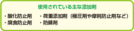 全体の0.5~10%を占めている成分で、添加剤の配合によって、成分を安定させたり、さまざまな性能を与えたりする効果に期待できます。