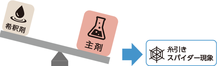 この現象を起こしやすくする原因の一つとして、“主剤と希釈剤の配合バランス”があります。