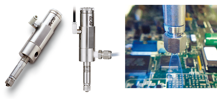 SV59MSはスパイダー現象に対応したノズルキャップをラインナップしているため蜘蛛の巣現象を回避できます。細いノズルを使用できるためコネクタ周りや部品の狭小ピッチにも対応できるのも魅力となっています。