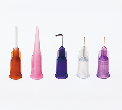 ニードルノズルは狭い場所への塗布に適していますし、テーパーノズルは粘度の高い液剤の塗布に使用します。広い面積を塗布する場合は、ブラシノズルやフラットノズルを使用しますし、微細な塗布をする場合には精密ノズルを用います。