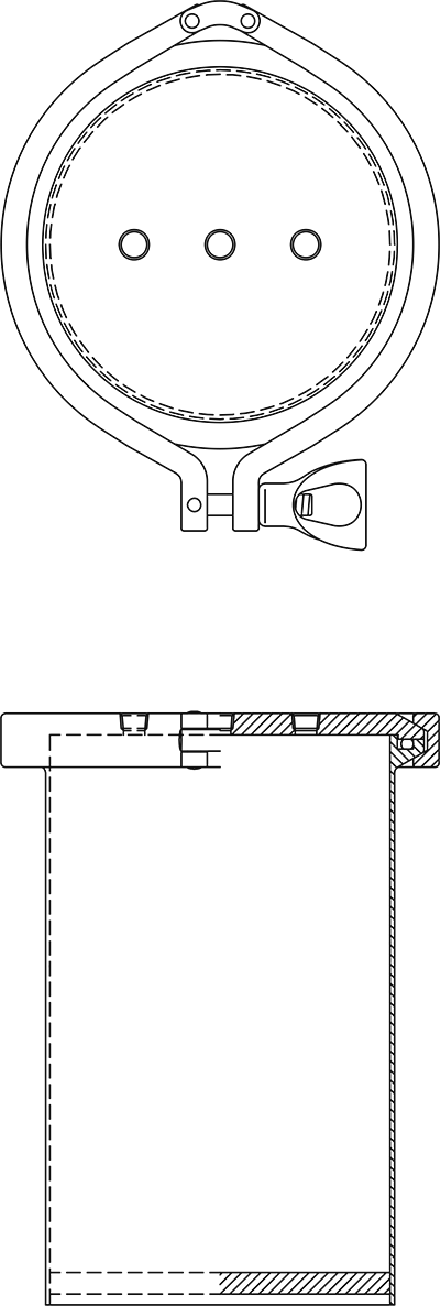 直接投入式(上方液送)は、タンク本体に材料を直接投入し、タンク上部からホースを通して供給する最もシンプルな構造の加圧タンクです。機構が複雑化しないため、価格を抑えやすく、メンテナンス性にも優れるという特長があります。そのため、材料を頻繁に切り替えない量産ラインや単一材料の長期連続供給では、最も扱いやすいベーシックモデルとして広く採用され、量産現場で最も普及している方式です。