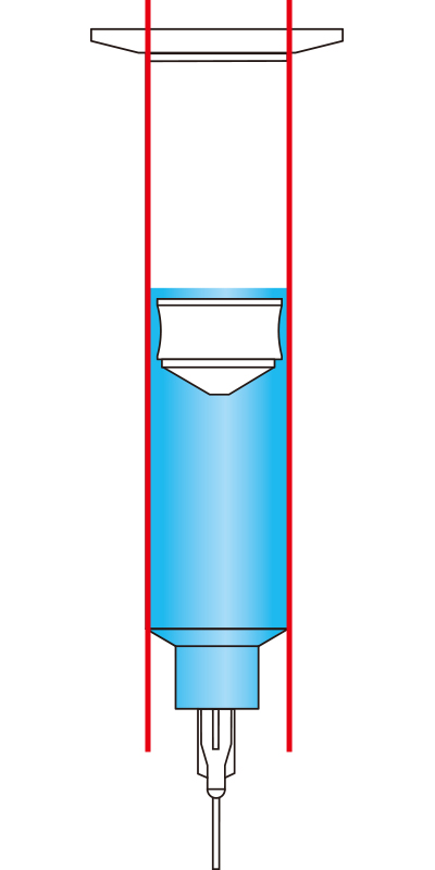 シリンジとピストンが使い始めから終わりまで一貫して“絶妙な密着性”を保っていれば、安定した吐出が可能になります。