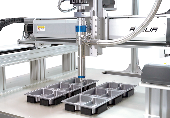 低〜高粘度液剤を±1%の精度で定量供給可能。RTVシリコーンのような難しい材料でも高精度な微小塗布を実現。