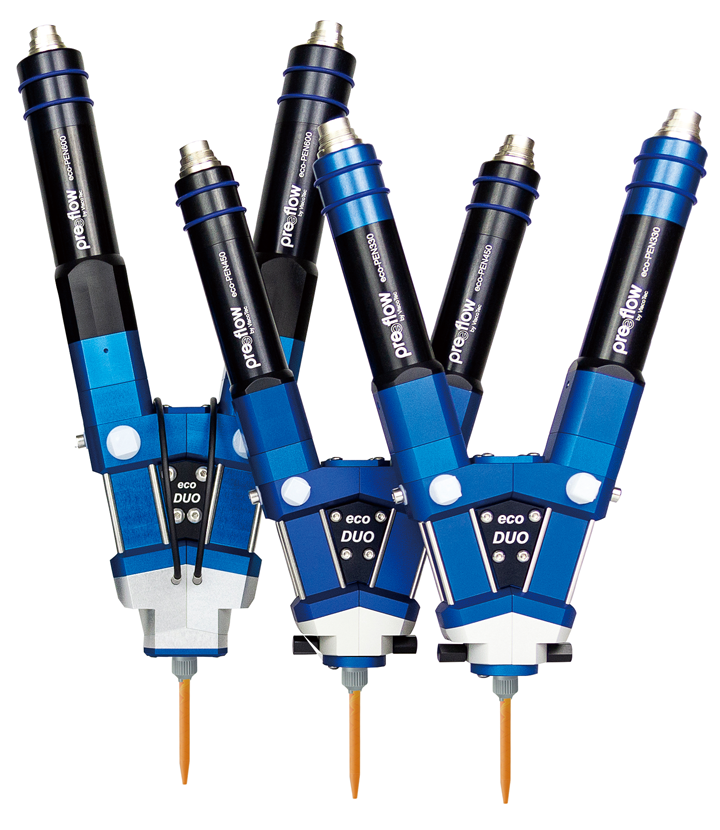2液性材料の精密混合・定量吐出に対応する高精度ディスペンサー。