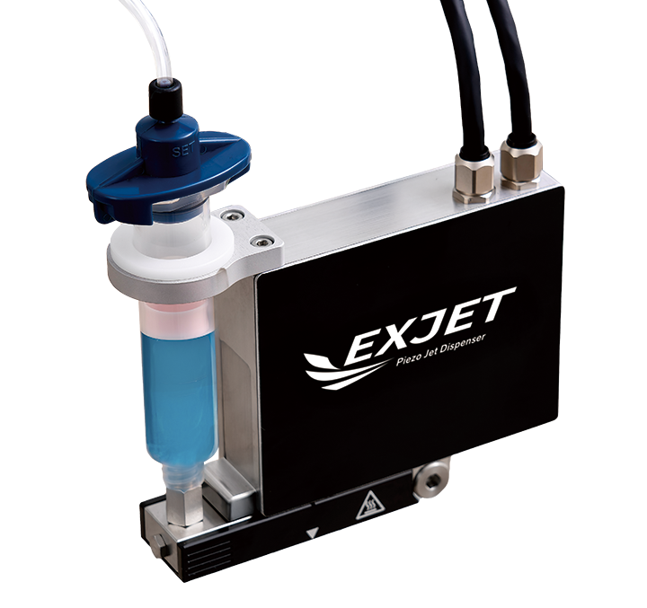 EXJETは、高密度・高精度実装が求められるカメラモジュール工程において、高粘度シリコーン樹脂の微小量線塗布を安定化させる新世代ピエゾJETディスペンサーです。非接触JET方式により線幅ばらつきを抑制し、レンズ周辺部などの狭小エリアへの高精度塗布と量産安定性を両立します。