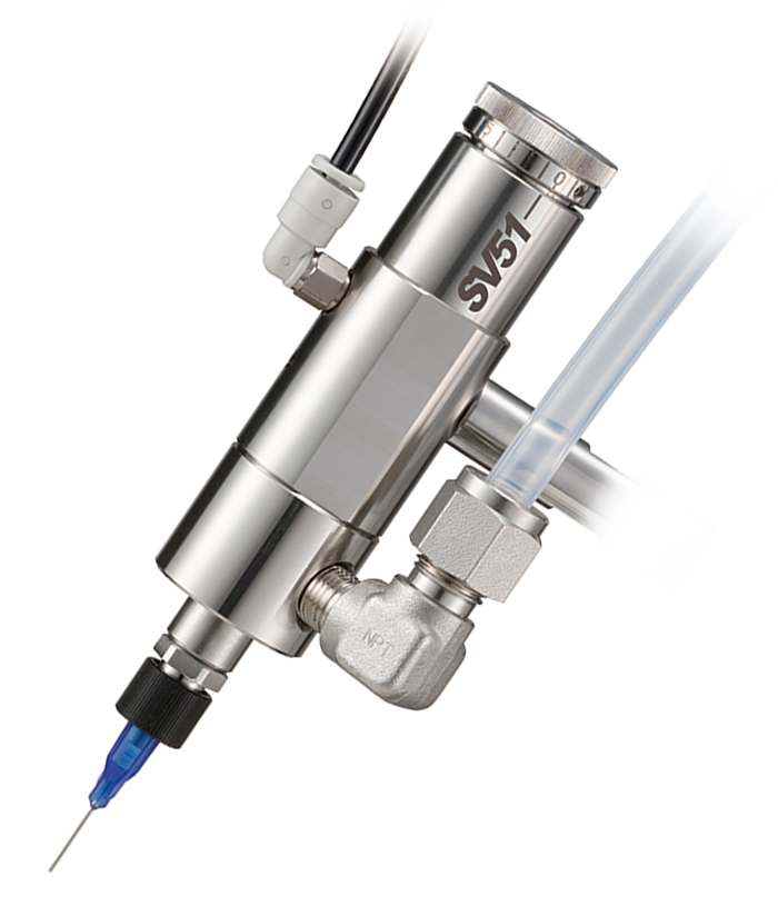 0.001ccレベルの微量吐出が可能で、エポキシ系封止材でも安定した塗布を実現します。狭小スペースでの過剰塗布を防ぎ、必要箇所に必要量のみを正確に塗布することで、材料コスト削減と信頼性向上に貢献します。